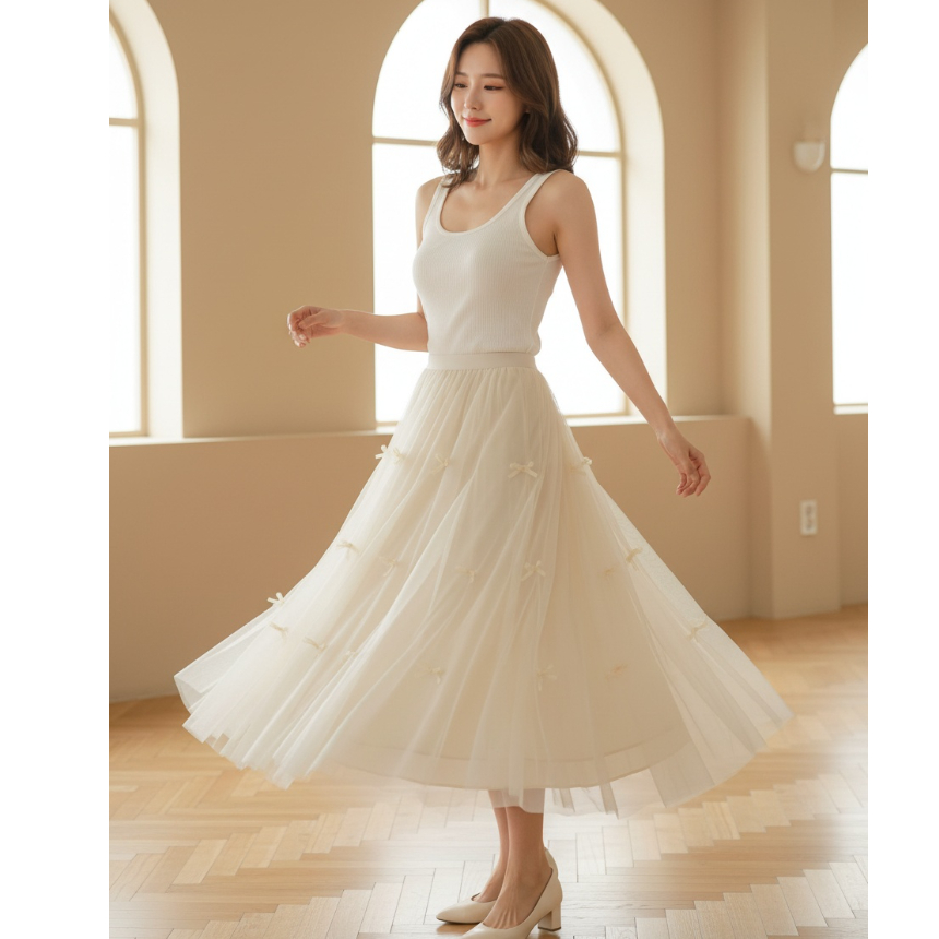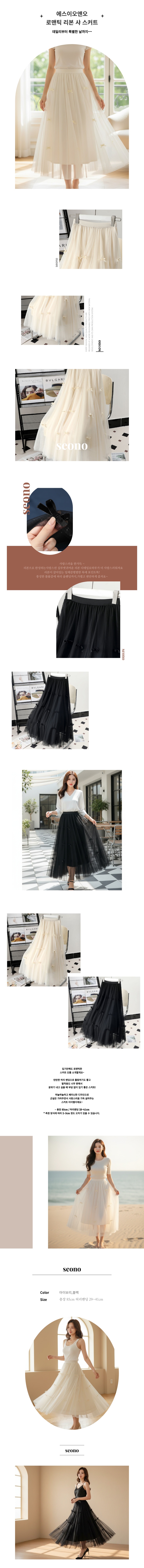 에스이오앤오 리본 쉬폰 밴딩 스커트 발레리나 레이스 2중 망사 하객패션 사랑스러운 풍성 롱샤스커트