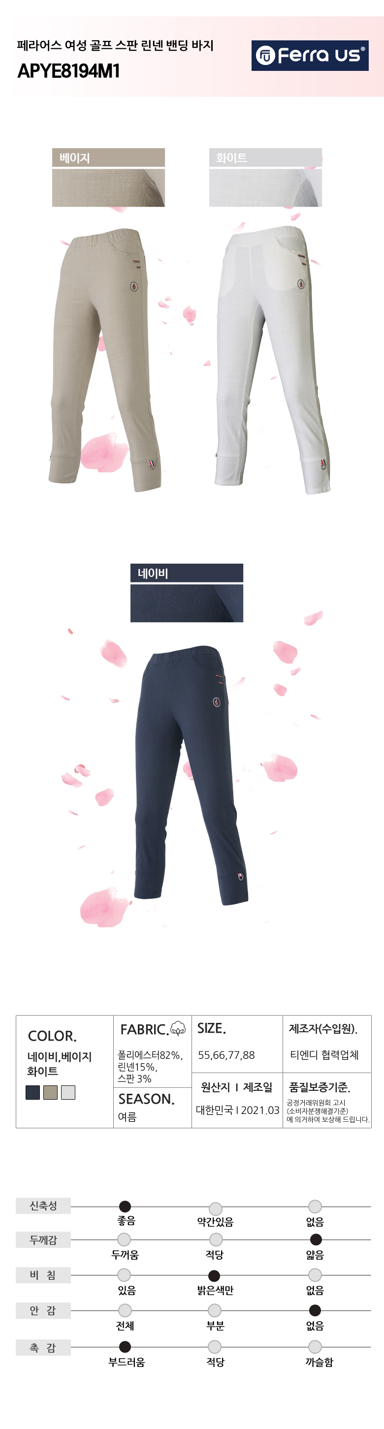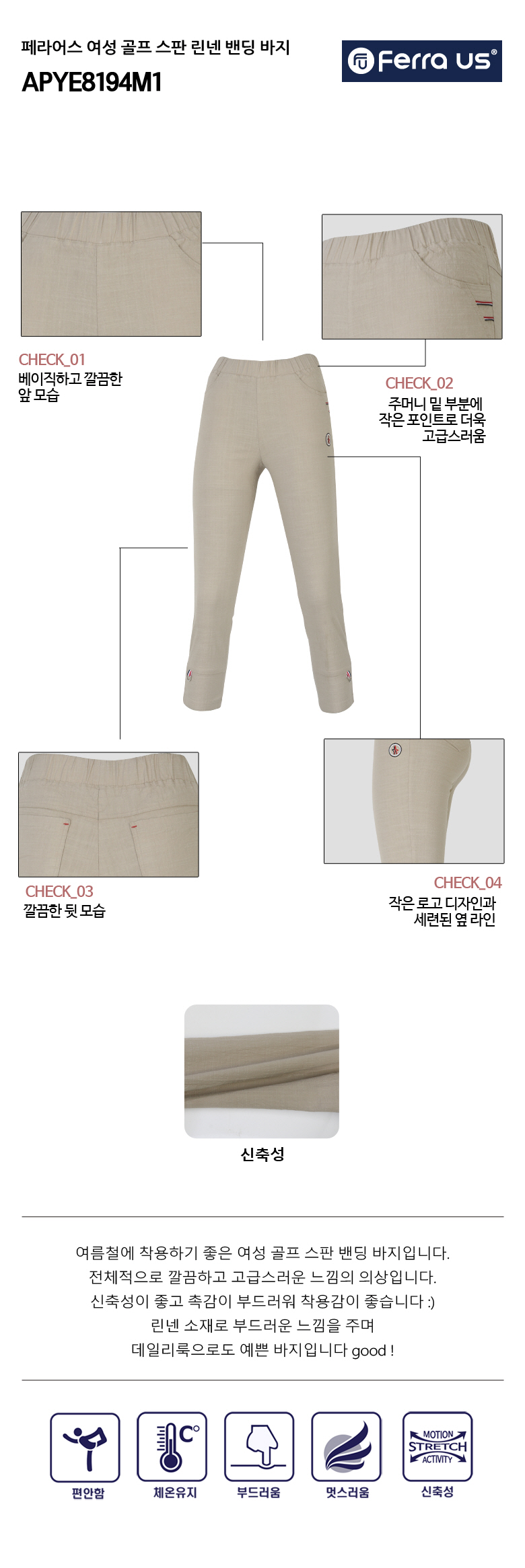 페라어스 여성 골프 스판 린넨 밴딩 바지 APYE8194M1