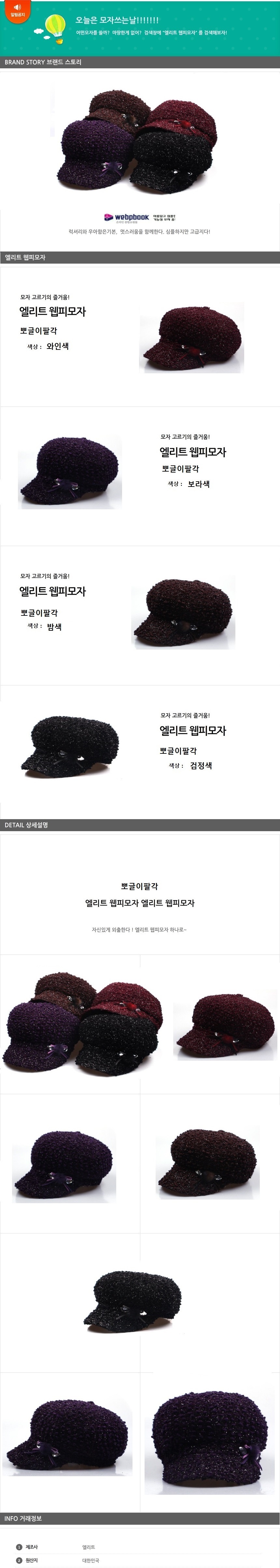 신상품 엘리트 웹피모자 뽀글이팔각모자 국내생산