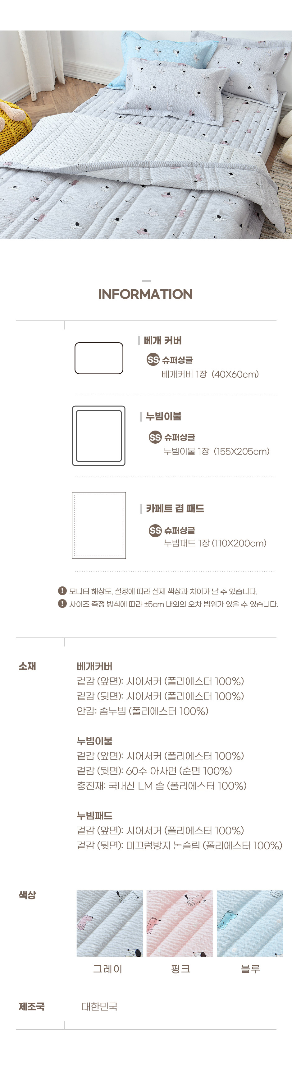 해피 냉감 시어서커 침대패드 SS 3컬러
