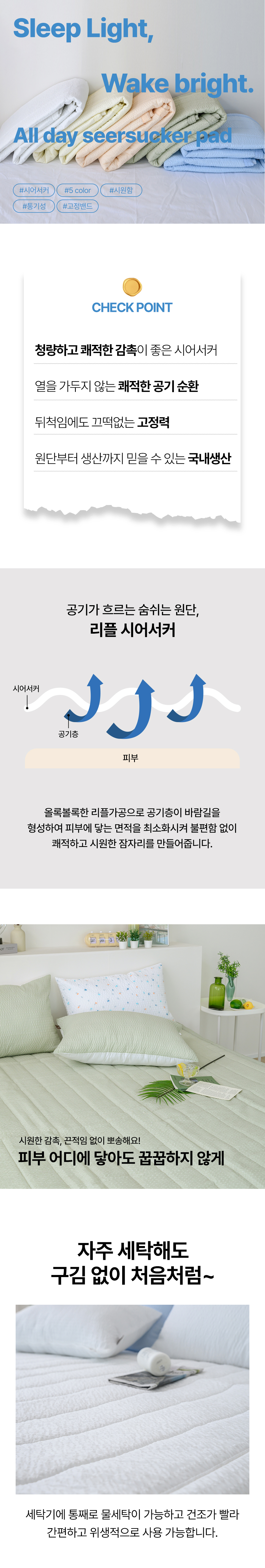 해피 냉감 시어서커 침대패드 Q 5컬러