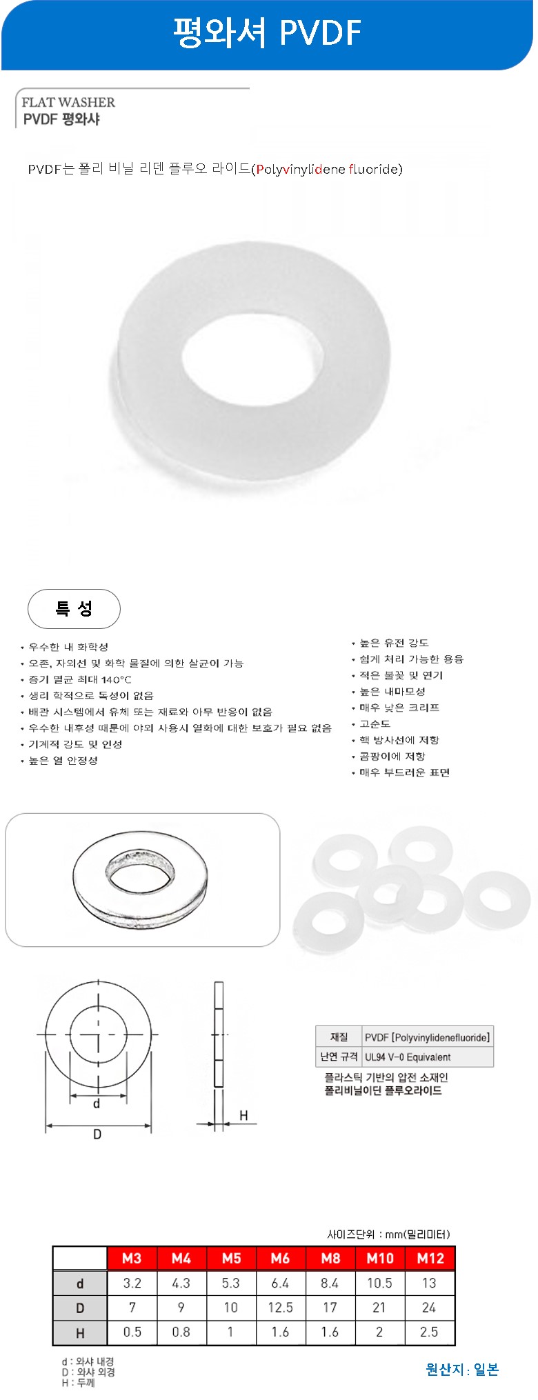 평와셔 PVDF 반투명 M3 100개(일본산)
