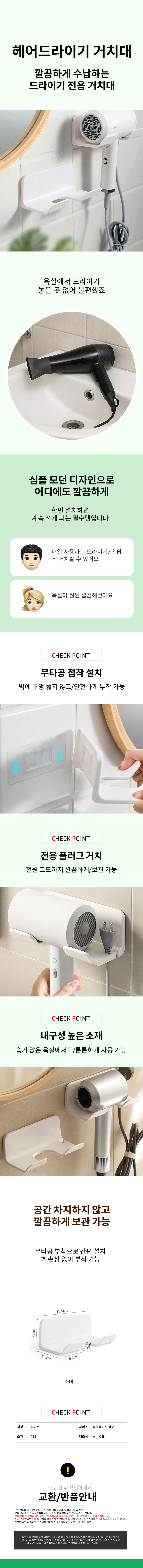 부착식 드라이기 거치대 화장실 정리 수납 홀더