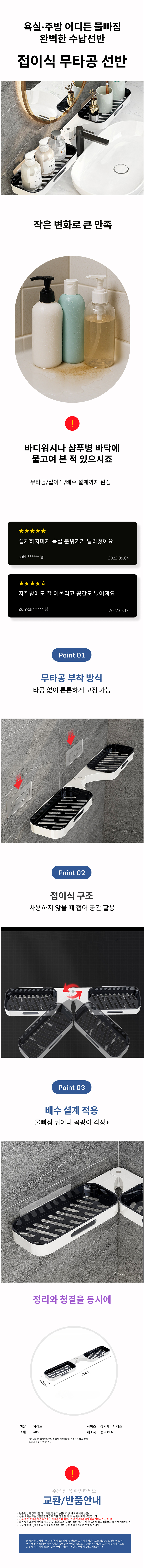 다용도 물빠짐 선반 접이식 코너 부착 접착선반 정리