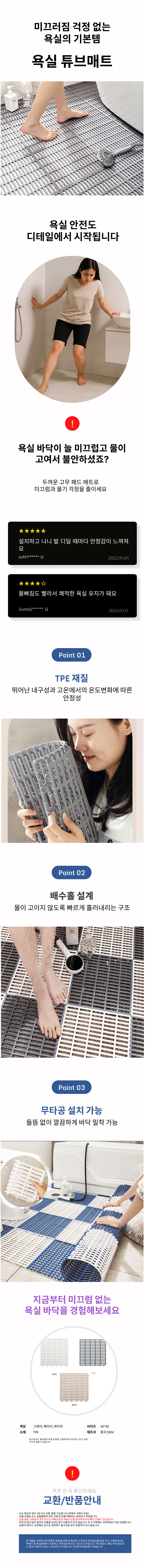 논슬립 물빠짐 욕실 튜브매트 화장실 발판 샤워패드
