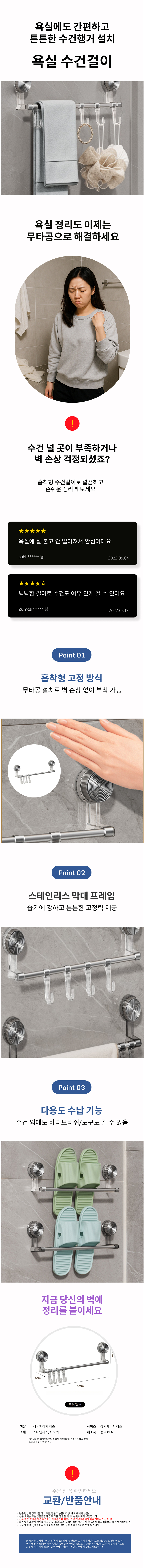 고리형 수건걸이 무타공 흡착식 수건행거 간편설치