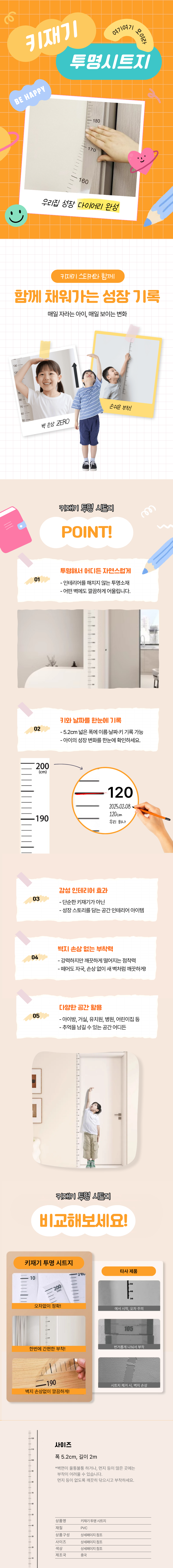 키재기 스티커 투명 벽지 시트지 2m 키 재는 부착식 줄자 벽면 문 테이프