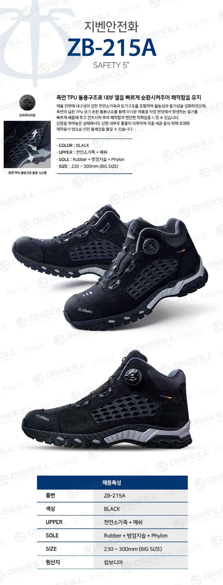 지벤안전화 6인치 ZB-215A