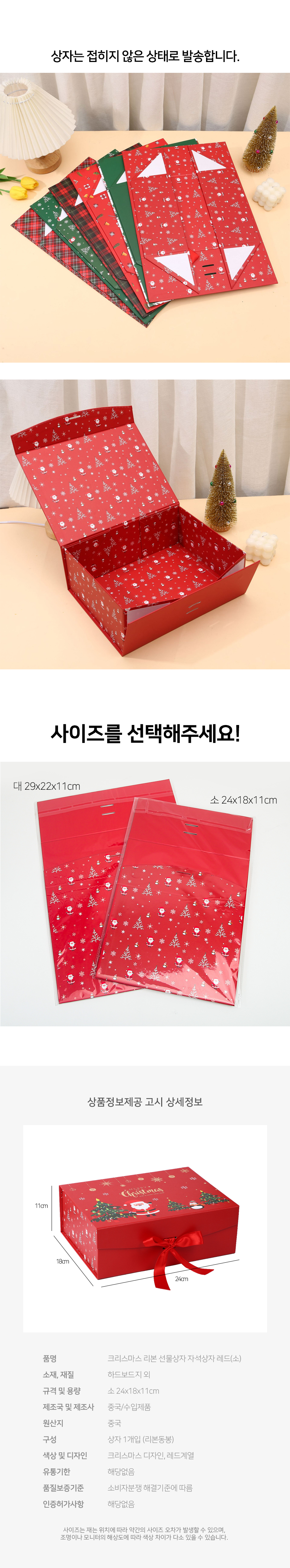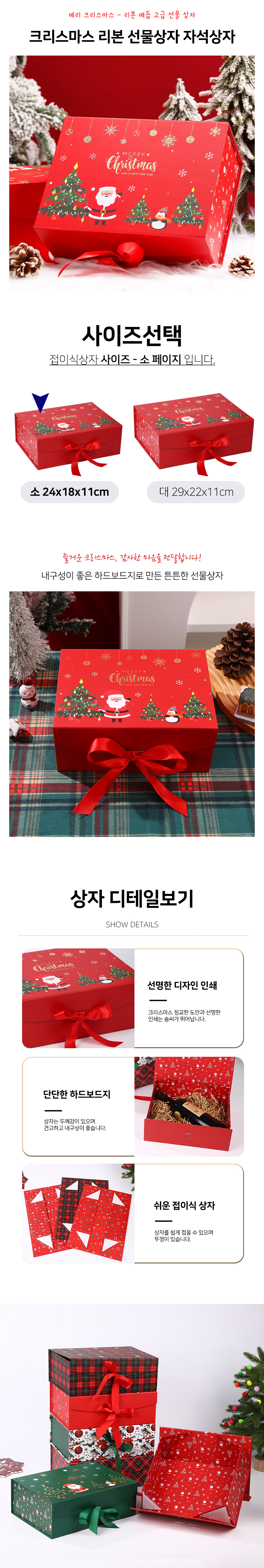 크리스마스 리본 선물상자 자석상자 레드(소)