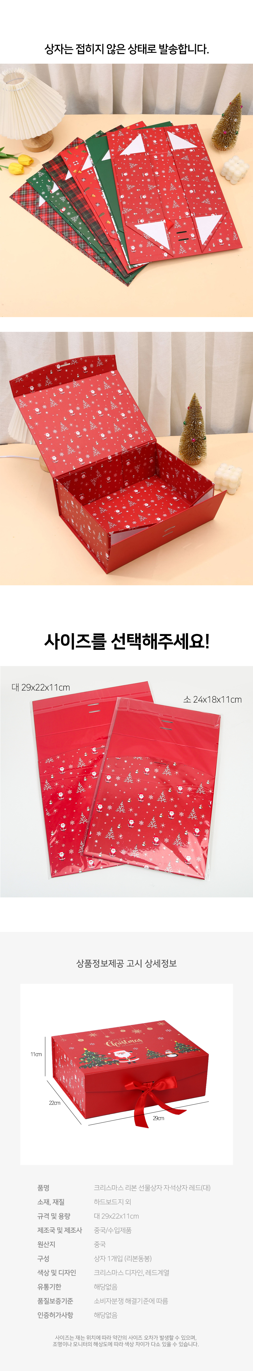 크리스마스 리본 선물상자 자석상자 레드(대)