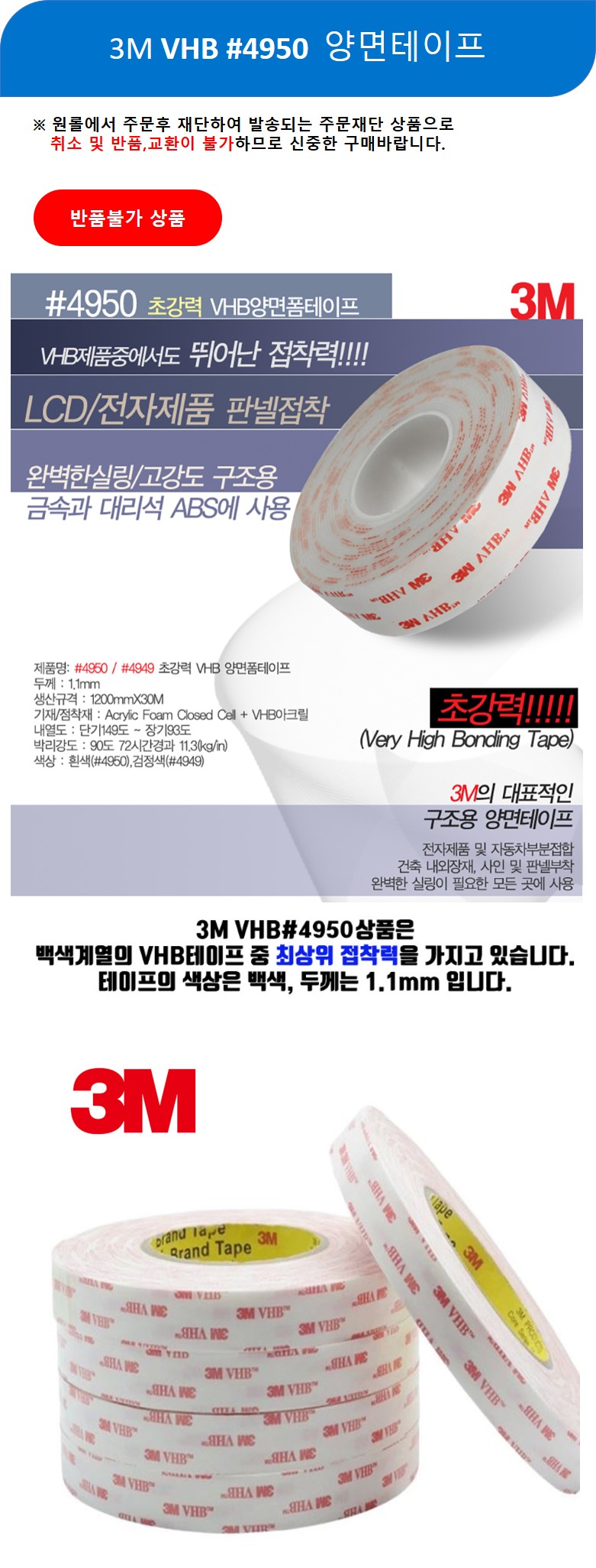 양면테이프 초강력 3M VHB4950 25mmX10m 2개