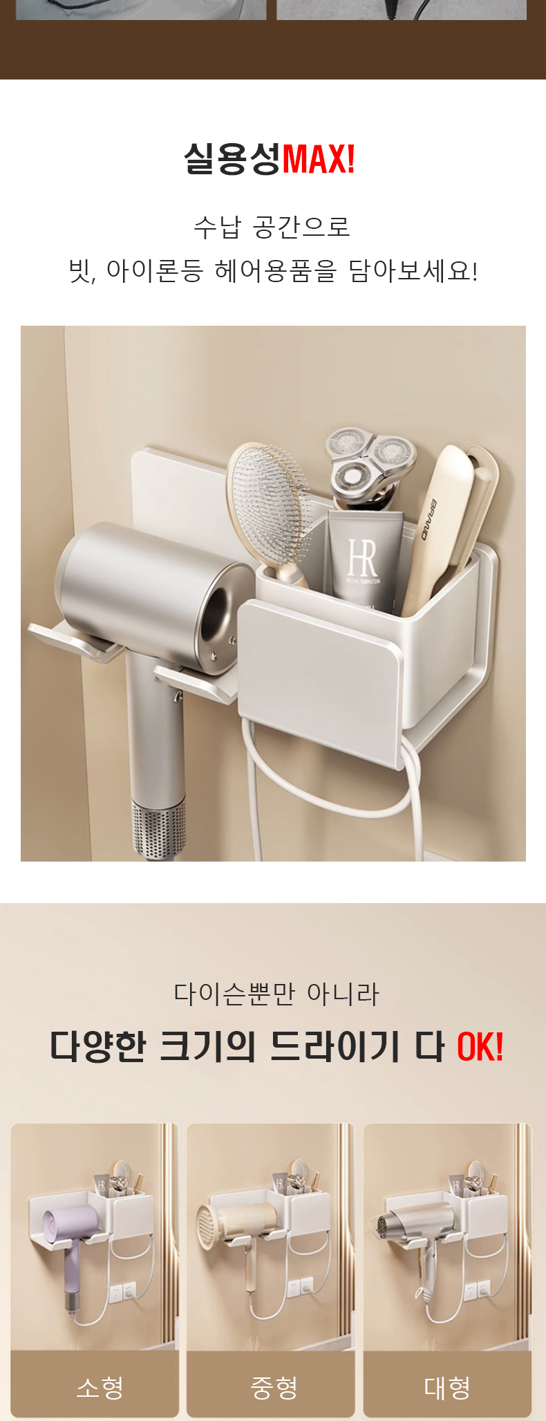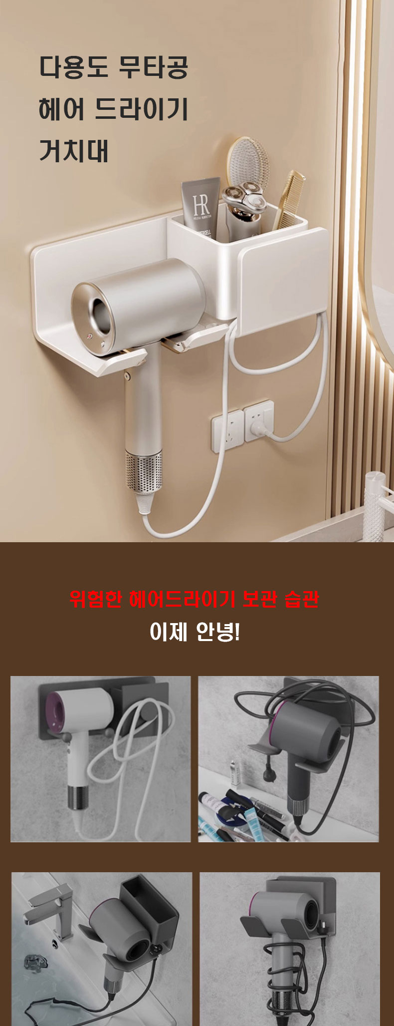 다용도 무타공 수납형 헤어 플라스틱 드라이기 거치대