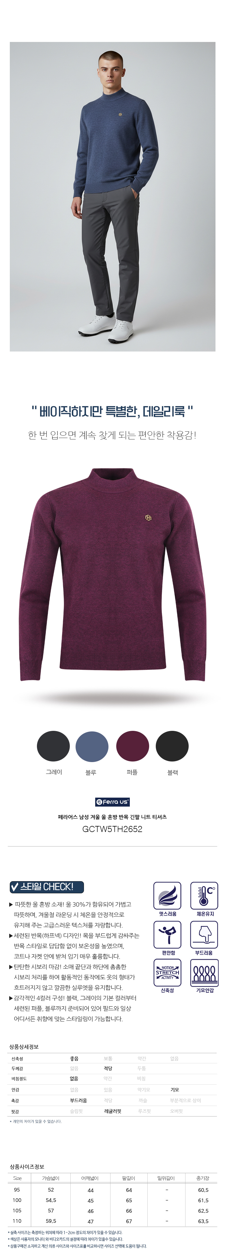 페라어스 남성 겨울 울 혼방 반목 긴팔 니트 티셔츠 GCTW5TH2652