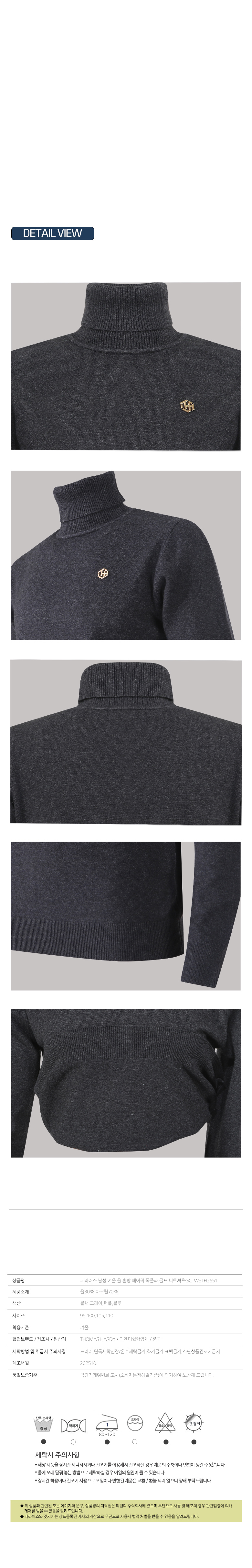 | 세탁방법 및 취급시 주의사항 | 드라이,단독세탁권장/온수세탁금지,화기금지,표백금지,스판상품건조기금지 |