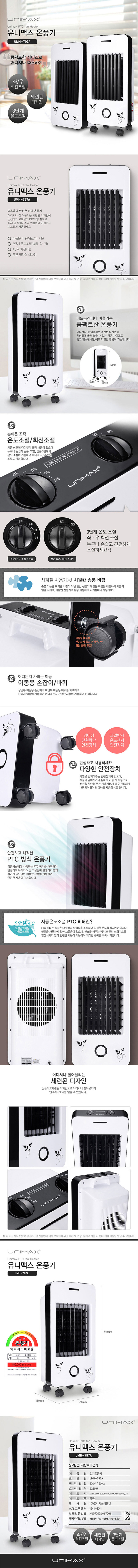 | 모델명 | 유니맥스797 PTC 온풍기 이동식 바퀴 송풍바람 회전 |