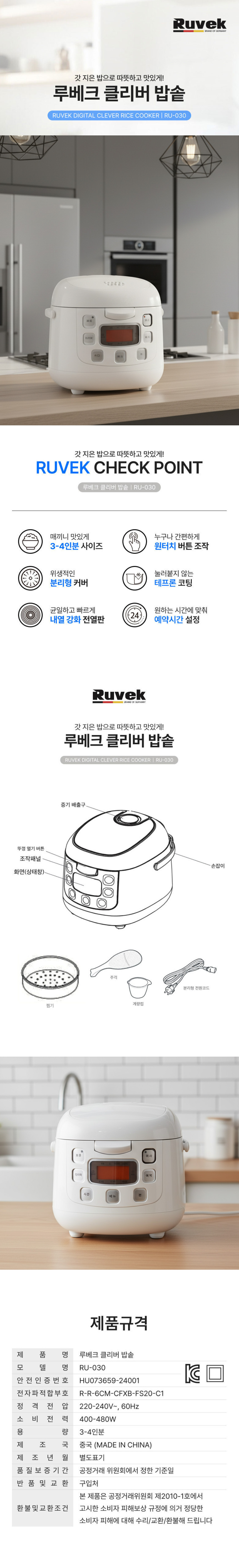 | 모델명 | 루베크030 디지털 클레버 전기밥솥 3-4인분 원터치버튼 |