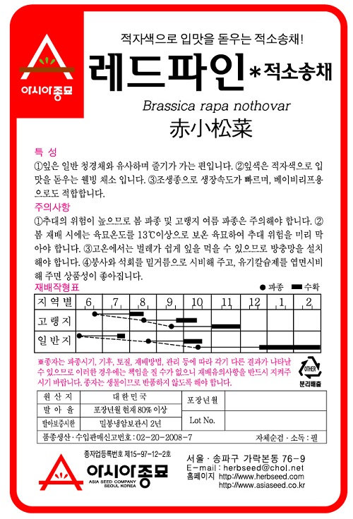 청경채(팍쵸이)-적소송채(레드파인) 3g