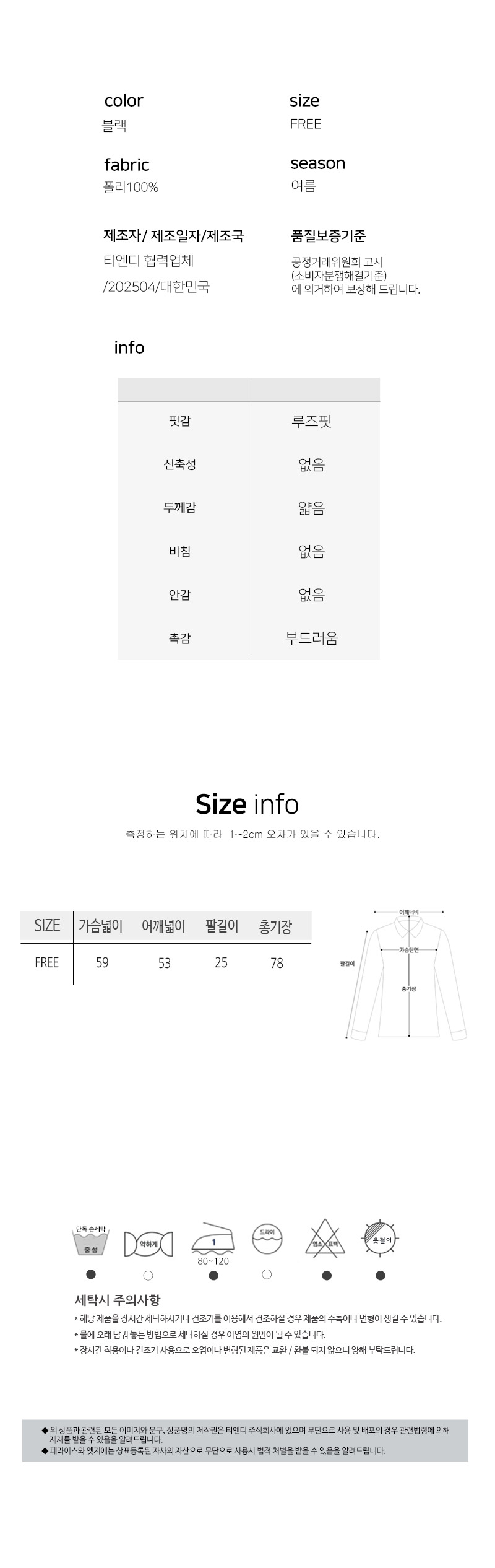 | 세탁방법 및 취급시 주의사항 | 드라이,단독세탁권장/온수세탁금지,화기금지,표백금지,스판상품건조기금지 |