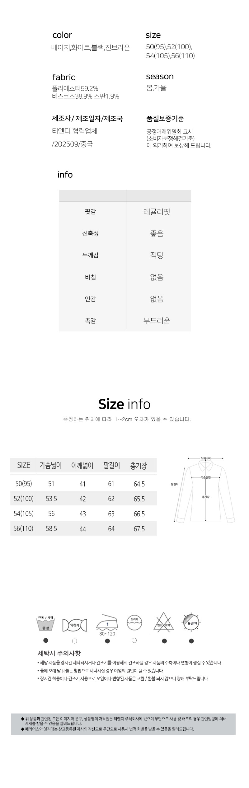 | 세탁방법 및 취급시 주의사항 | 드라이,단독세탁권장/온수세탁금지,화기금지,표백금지,스판상품건조기금지 |