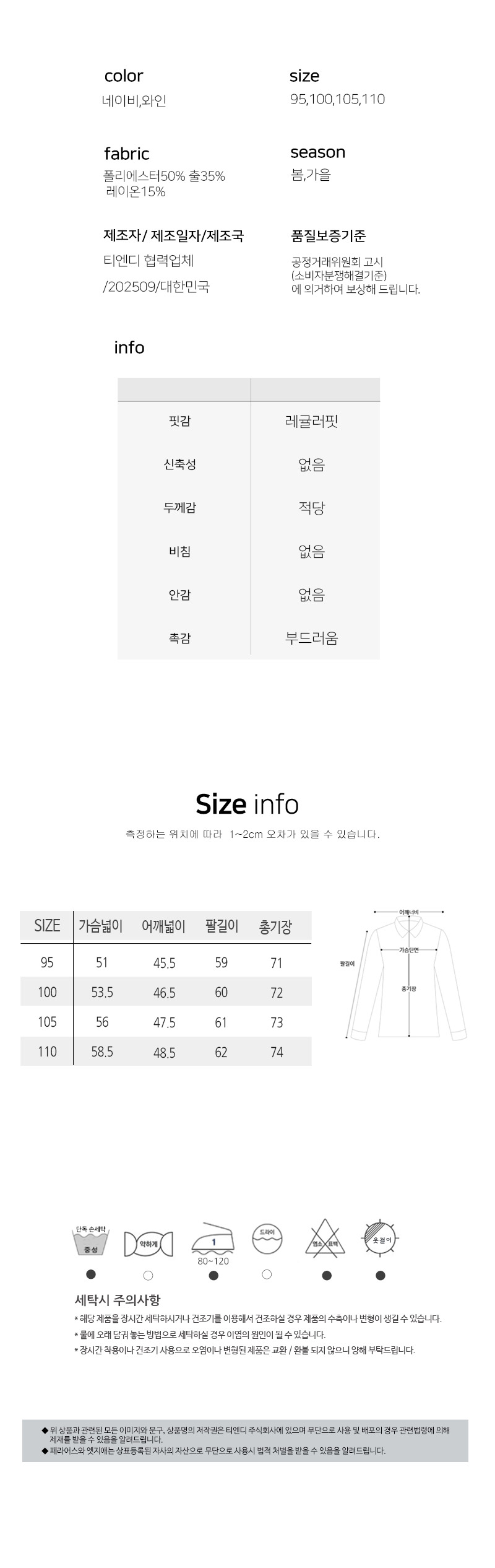 | 제품소재 | 폴리에스터50% 출35% 레이온15% |