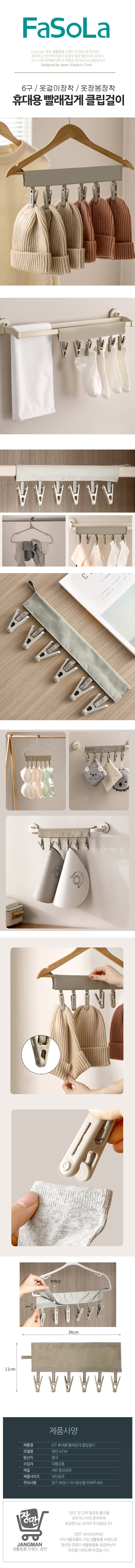 | 모델명 | 장만A734 휴대용 빨래집게 클립걸이 6구 찍찍이부착 옷걸이 |