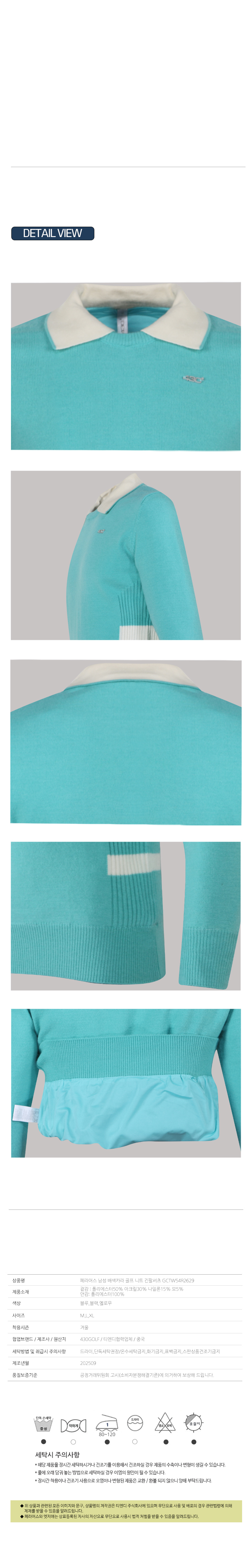 | 세탁방법 및 취급시 주의사항 | 드라이,단독세탁권장/온수세탁금지,화기금지,표백금지,스판상품건조기금지 |