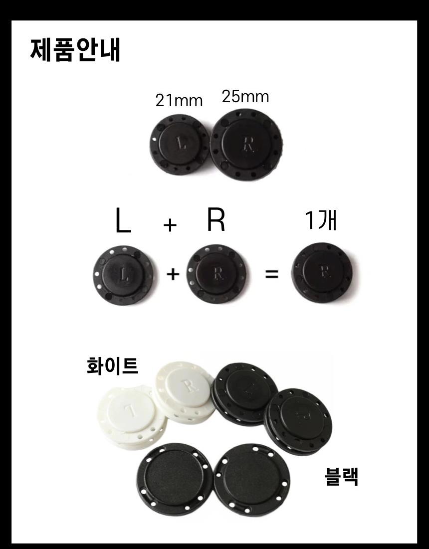 플라스틱 자석단추 가방수선 의류자석단추 21mm x20개