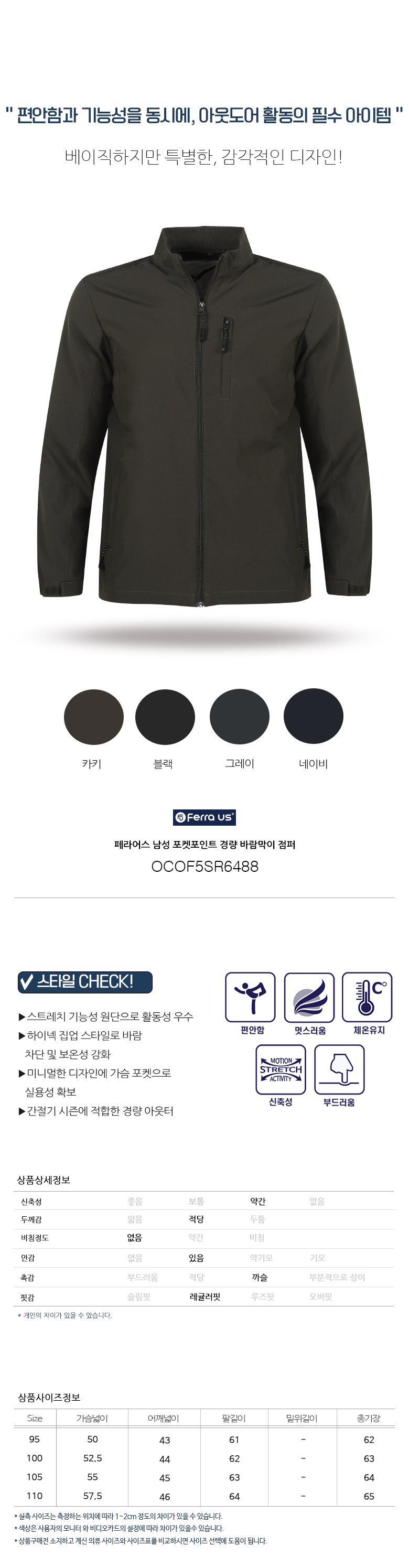 | 색상 | 블랙,네이비,그레이,카키 |