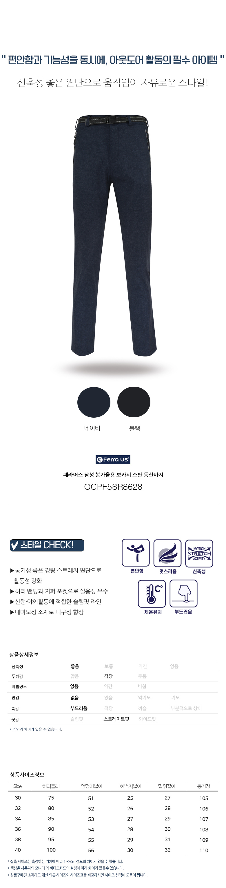페라어스 남성 봄가을용 보카시 스판 등산바지 OCPF5SR8628