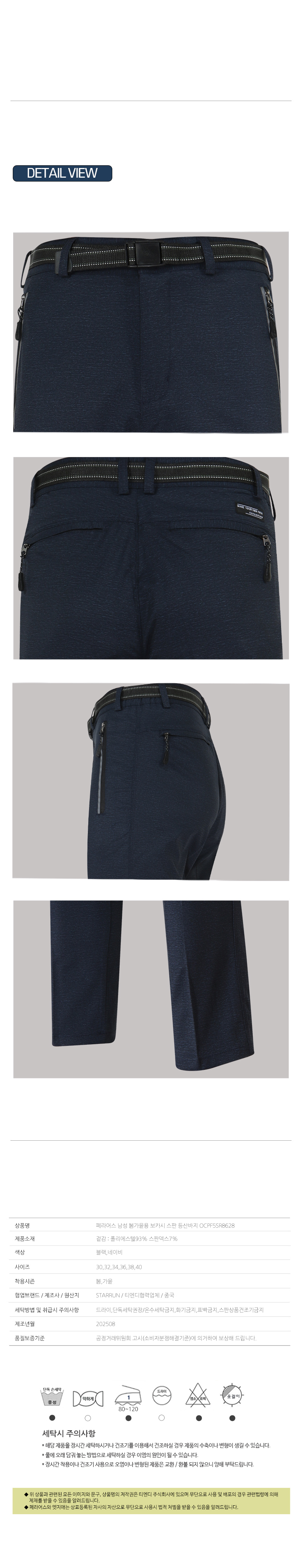 세탁방법 및 취급시 주의사항 드라이,단독세탁권장/온수세탁금지,화기금지,표백금지,스판상품건조기금지