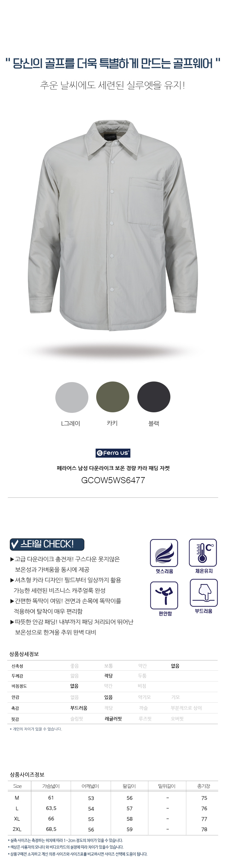 | 제품소재 | 겉감 : 폴리에스터100% 안감 : 폴리에스터100% 충전재 : 다운라이크100% |