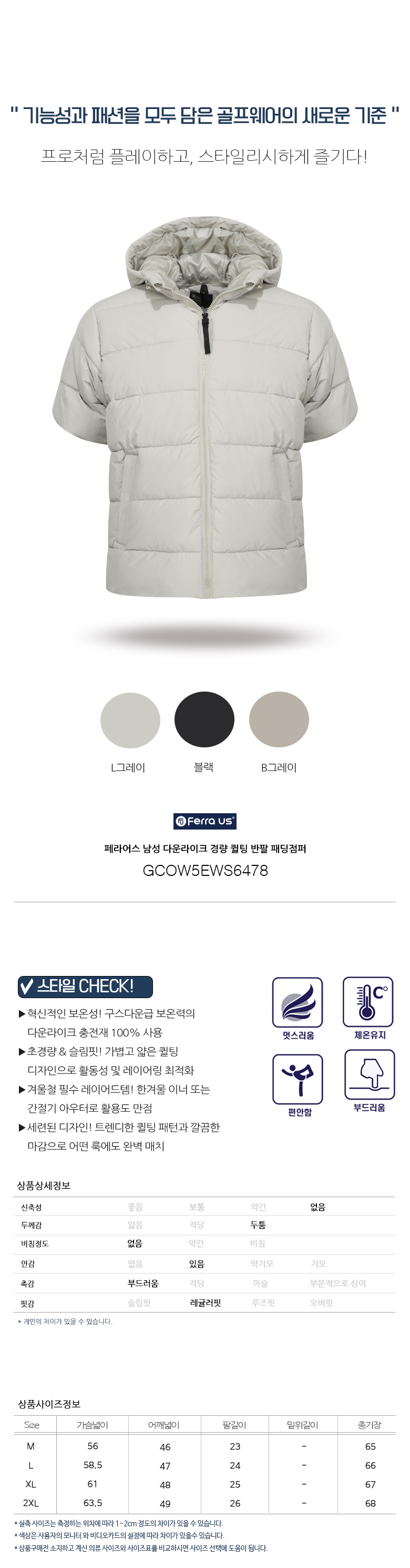 | 제품소재 | 겉감 : 폴리에스터100% 안감 : 폴리에스터100% 충전재 : 다운라이크100% |