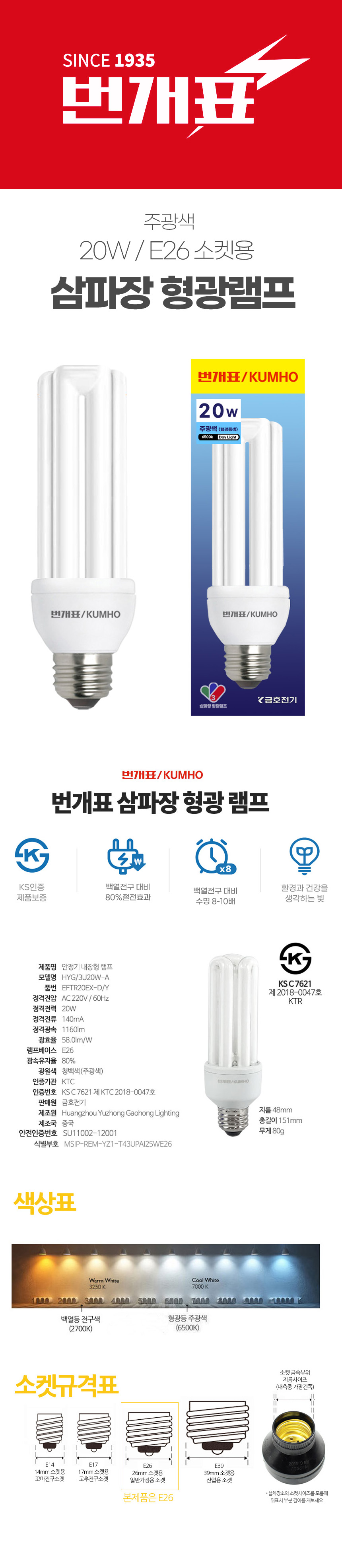 | 모델명 | 번개표 삼파장 형광램프 20W 안정기 내장형 전구 다마 형광전등 삼파장전등 |