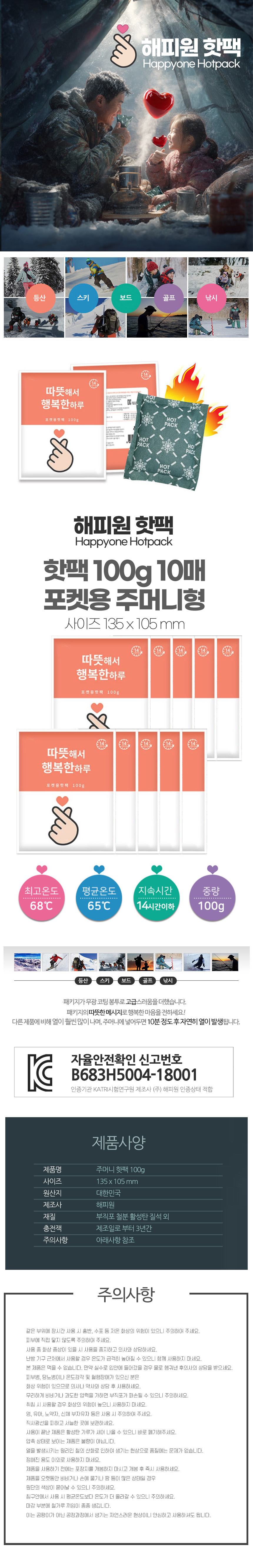 | 모델명 | 해피원 핫팩 100g 10개 주머니핫팩 포켓용핫팩 14시간지속 손난로 주머니난로 |
