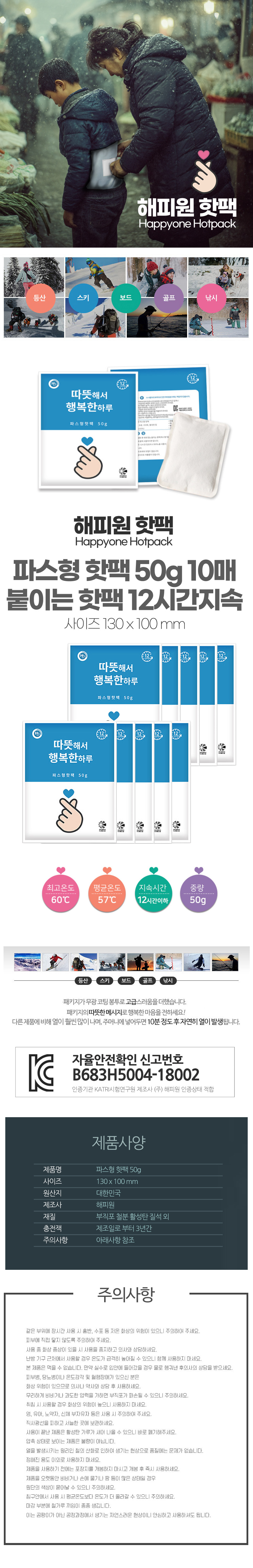 | 모델명 | 해피원 파스형 핫팩 50g 10개 붙이는핫팩 의류부착용 스티커형 옷핫팩 |