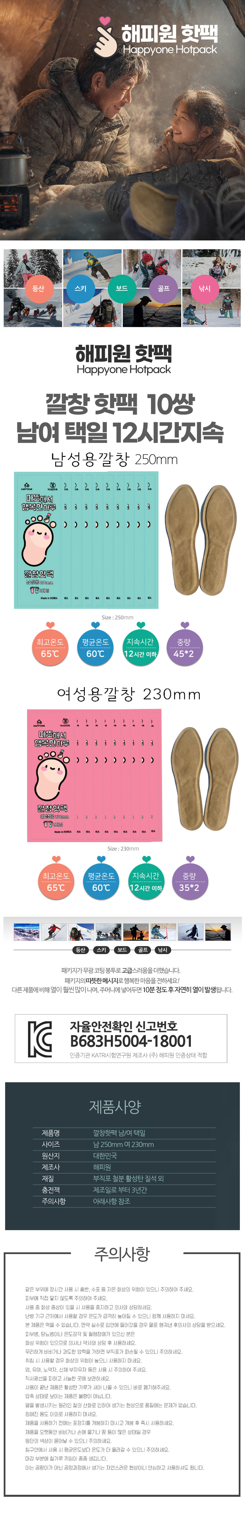 | 품명 | 해피원 깔창 핫팩 10쌍 남자 250mm 여자230mm 신발 등산화 낚시 골프화 |