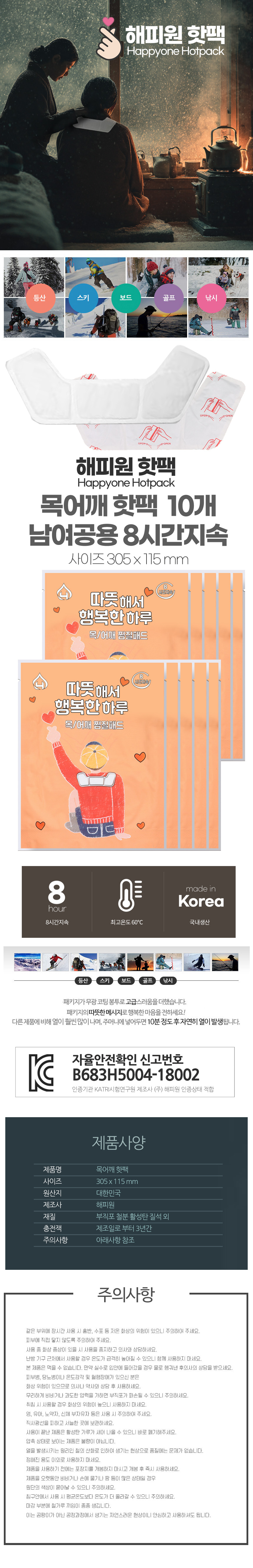 | 모델명 | 해피원 목어깨 핫팩 10개 8시간지속 찜질핫팩 마사지 남여공용 목어께핫팩 |